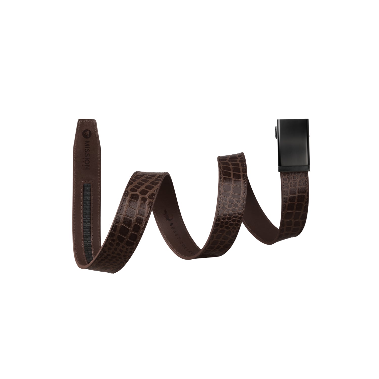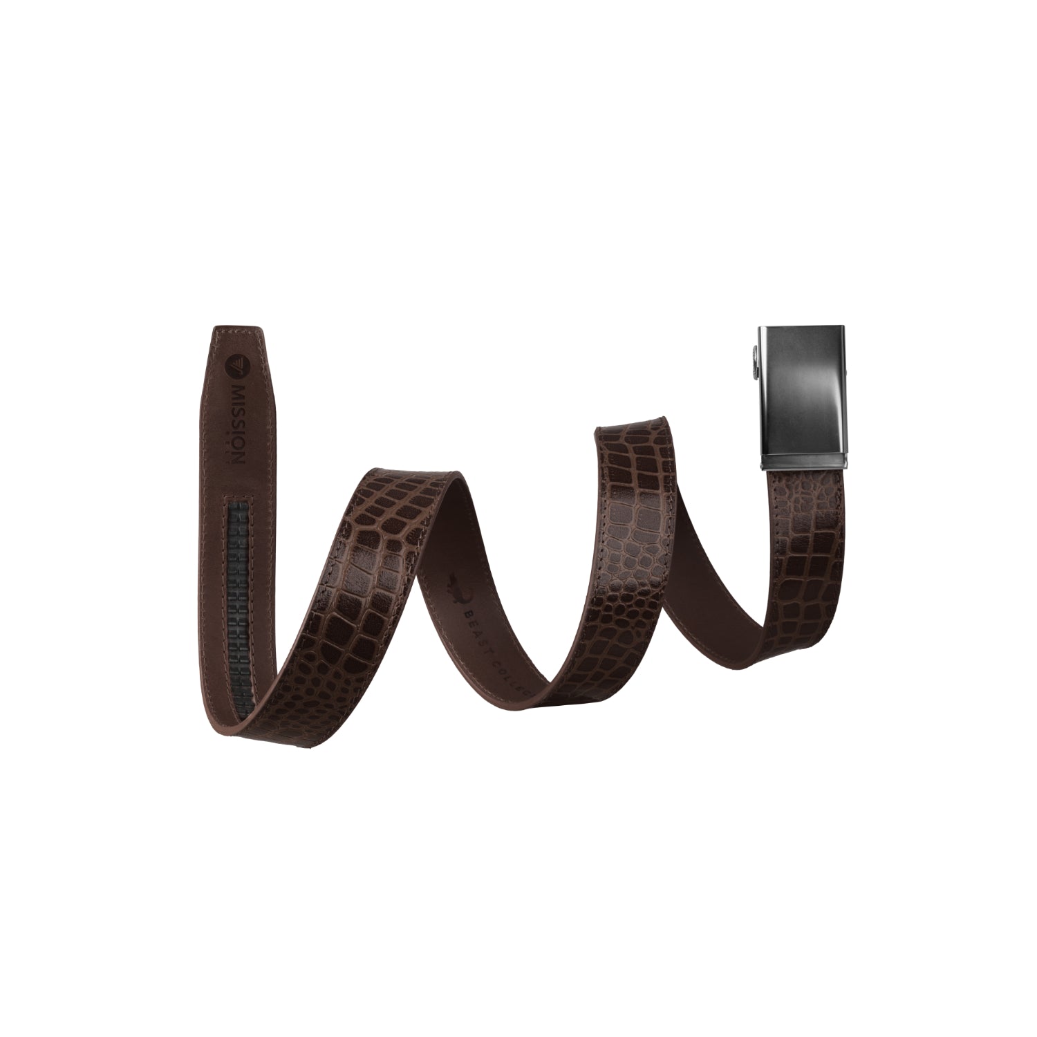 Meet The Beast Collection—no hunting permit required. These animal-skin-embossed leather belts bring apex energy without the whole "wrestling-a-crocodile" lifestyle choice. Same Mission Belt muscle, same no-BS ratchet fit, now dressed in textures that look like they could bite back. It's refined, a little reckless, and built for people who prefer their style with teeth. Clean enough for the office. Wild enough for after. Proceed accordingly.
